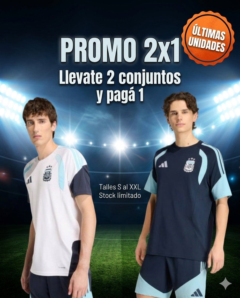 Es tu oportunidad de llevarte 2 conjuntos completos de la Selección Argentina al precio de uno.